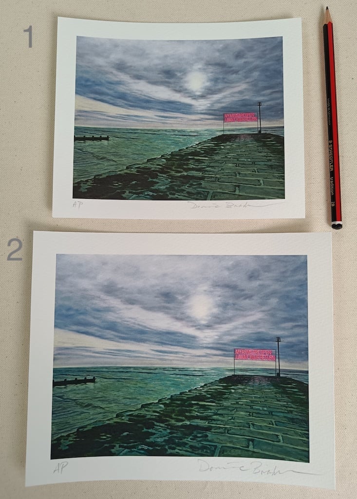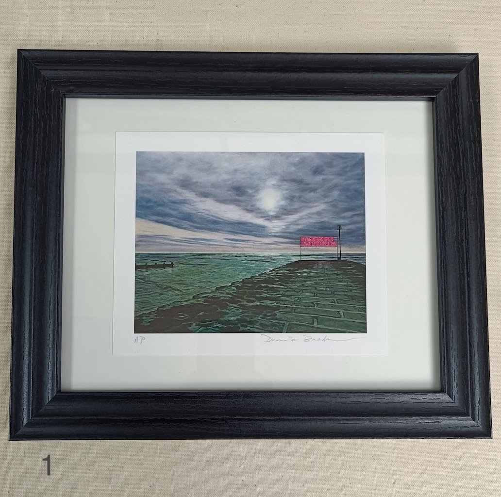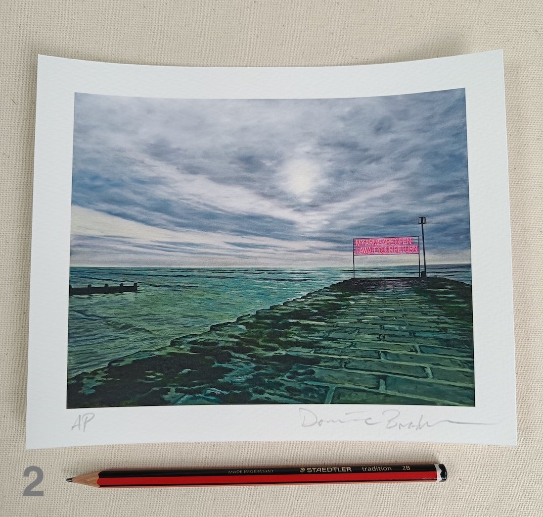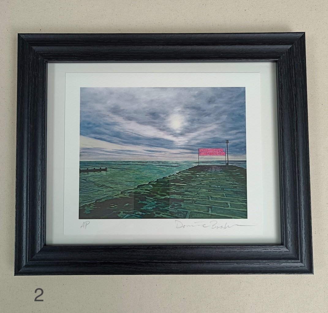 Only 1 of each available – These mini & midi prints are high-resolution reproductions of my painting of the jetty at Ferring Beach on the West Sussex coast.
